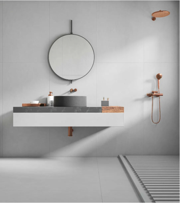 以经典的灰白色作为空间主色调,没有任何多余的装饰,仅聚焦于浴室功能本身,打造具有极简气息的空间。